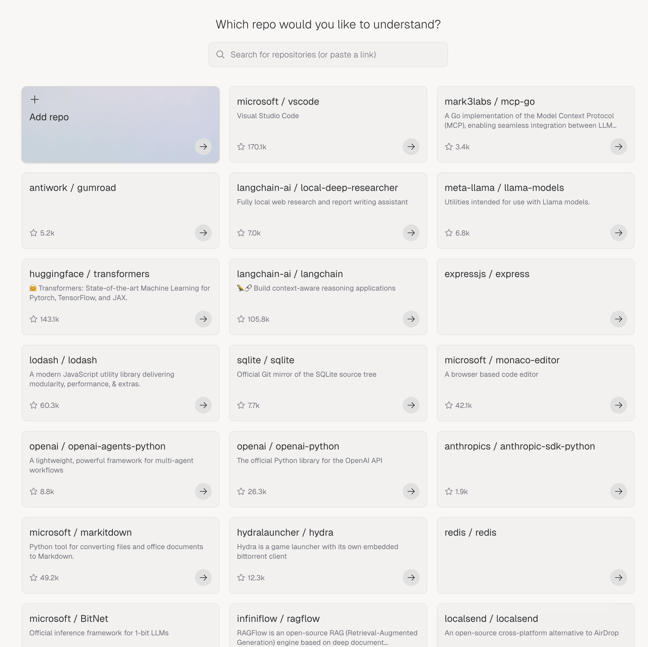 A neat tool that gives you a Wiki site for any GitHub repo you're interested in, with a built-in AI chat interface to ask specific questions about the code.